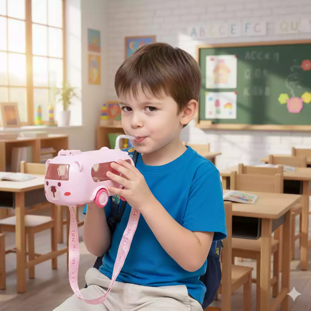 The kids bus water bottle is a perfect combination of fun, safety, and convenience. With its cute bus shape, straw & sipper system, and easy-carry strap, it makes hydration enjoyable for kids and worry-free for parents.